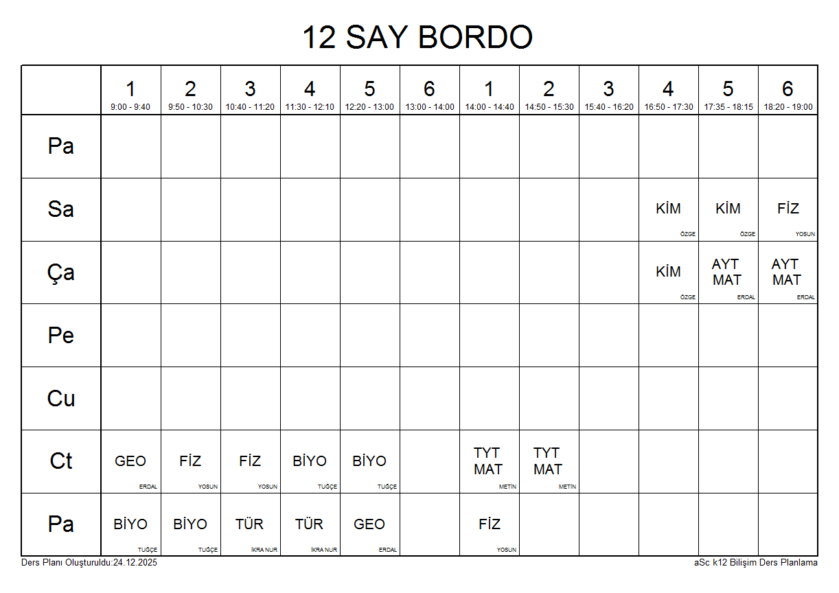 12 SAY BORDO