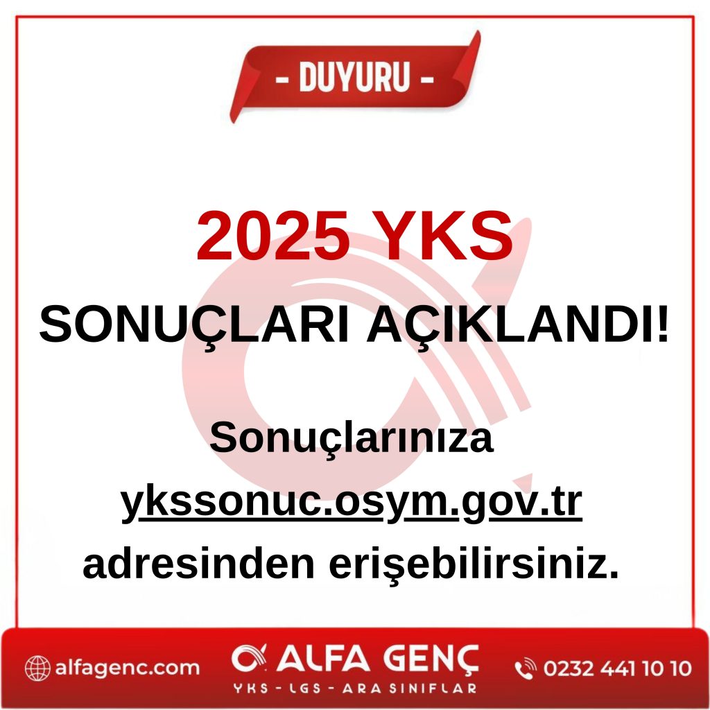 2025-YKS: Sınav Sonuçları Açıklandı 21-22 Haziran 2025 tarihlerinde uygulanan Yükseköğretim Kurumları Sınavı’nın (2025-YKS) değerlendirme işlemleri tamamlanmıştır. SAYISAL VERİLER: https://cdn.osym.gov.tr/pdfdokuman/2025/YKS/sayisalbilgiler_tayd19072025.pdf SINAV SONUCU: https://ykssonuc.osym.gov.tr/