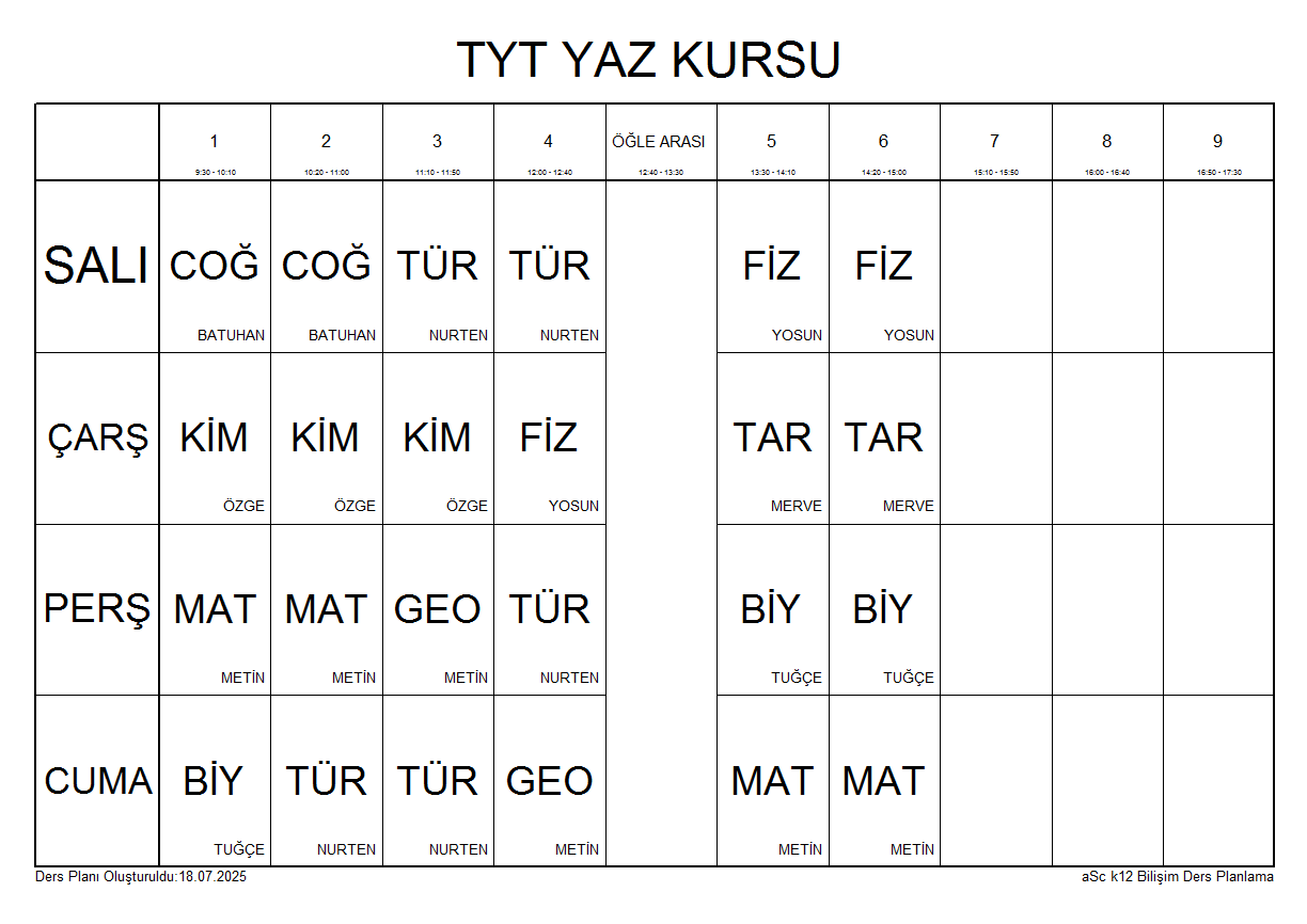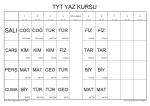 TYT YAZ KURSU DERS PROGRAMI